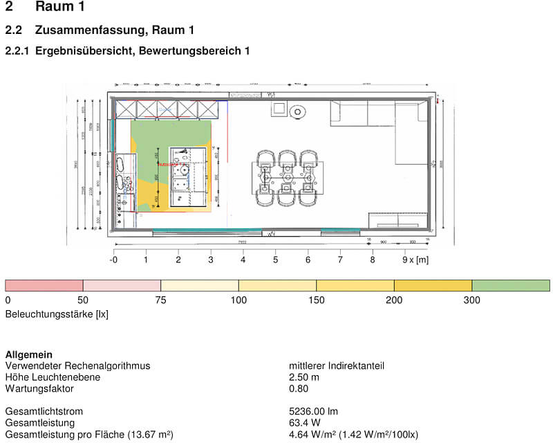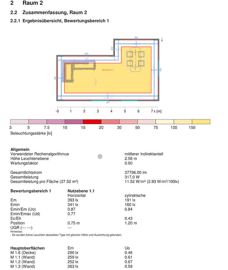 Lichtplanung / Ergebnisübersicht