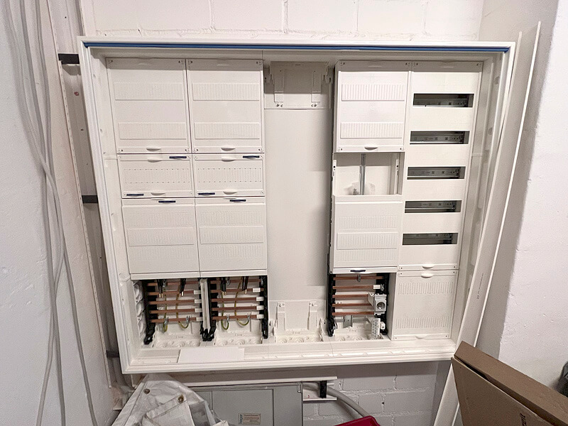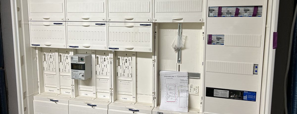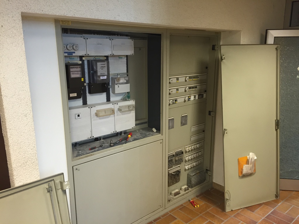 In unserem Praxisbeispiel handelt es sich um ein 2 geschossiges Geschäftsgebäude mit Hausmeisterwohnung dass in den 70er Jahren gebaut wurde. Die Gewerbeeinheit war lange im Leerstand, so dass der Eigentümer sich überlegte, die Etagen einzeln zu vermieten. Der Zählerplatz im Treppenhaus konnte so umgebaut werden, dass die Etagen vom Strom getrennt werden konnte, jedoch erlöschte der Bestandschutz und nach den gültigen Vorschriften musste die bestehende Zählerplatzanlage für den Ernstfall mit einer Systemtrennwand vom Treppenhaus getrennt werden um das Treppenhaus gefahrenfrei als Fluchtweg nutzen zu können. Die einzelnen Arbeitsschritte und weitere Beispiele sehen Sie in der Bildergalerie.
