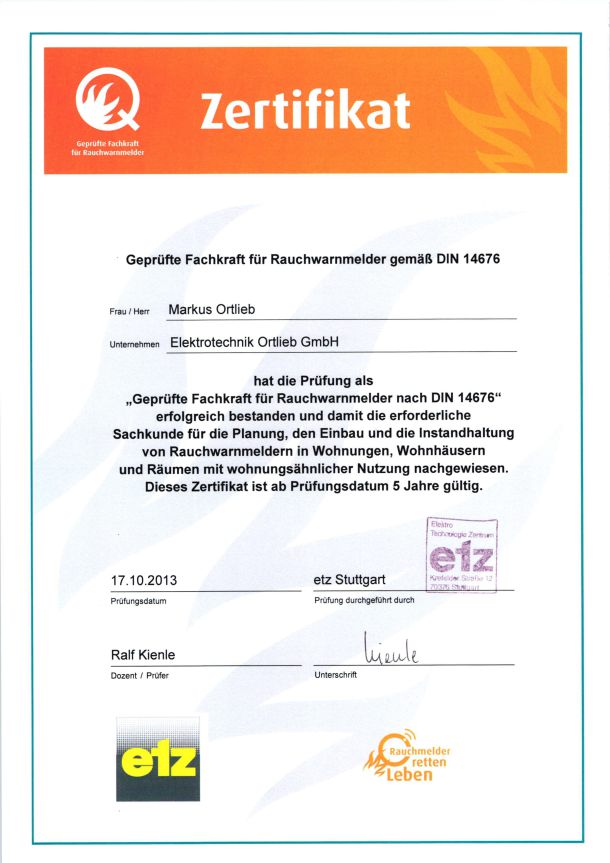 etz – Geprüfte Fachkraft für Rauchwarnmelder 2013