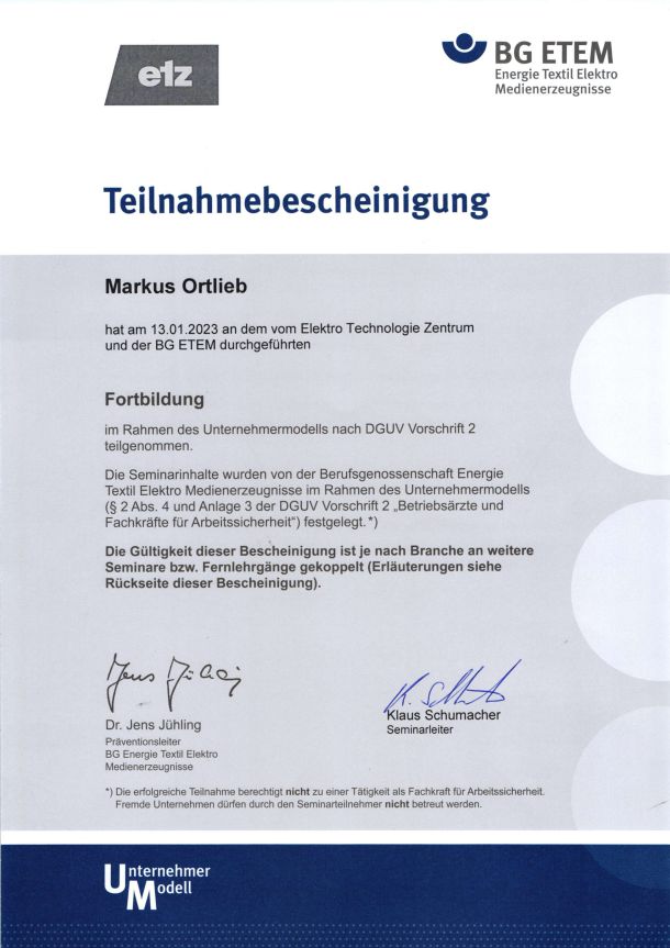 etz – Fortbildung 2023 Berufsgenossenschaft ETEM