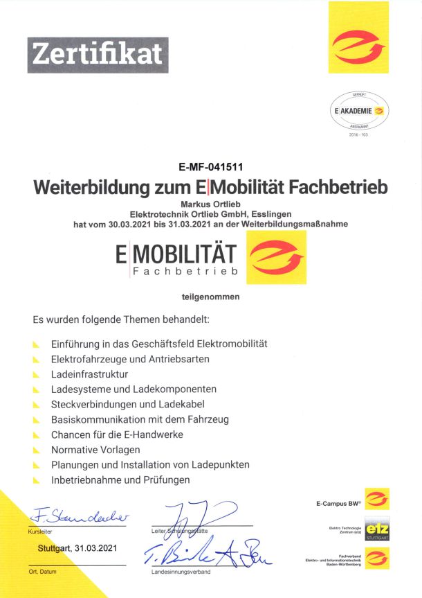 E|Akademie – Weiterbildung E|Mobilität Fachbetrieb 2021