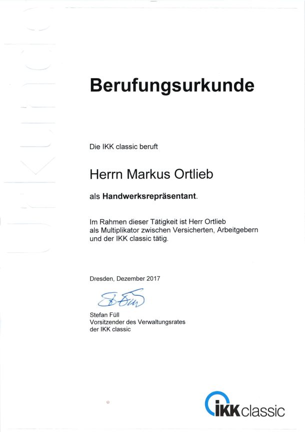 IKK classic – Berufung zum Handwerksrepräsentant